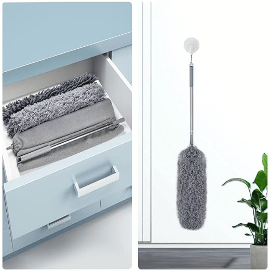 The duster features a bendable design, allowing it to easily reach and clean tricky corners and angles, ensuring thorough cleaning.